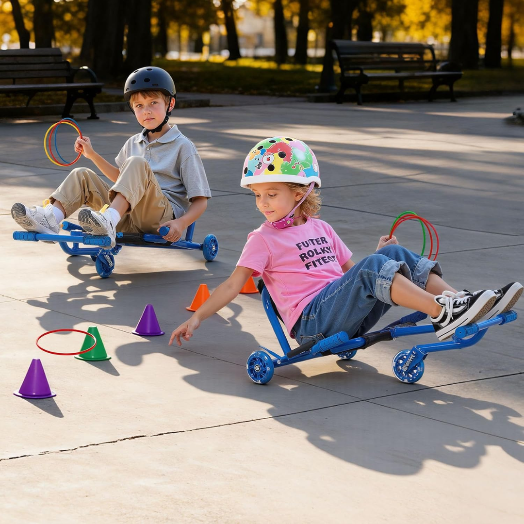 Just sit down, wiggle the handlebars side-to-side, and they're off—it's pure physics-powered fun.